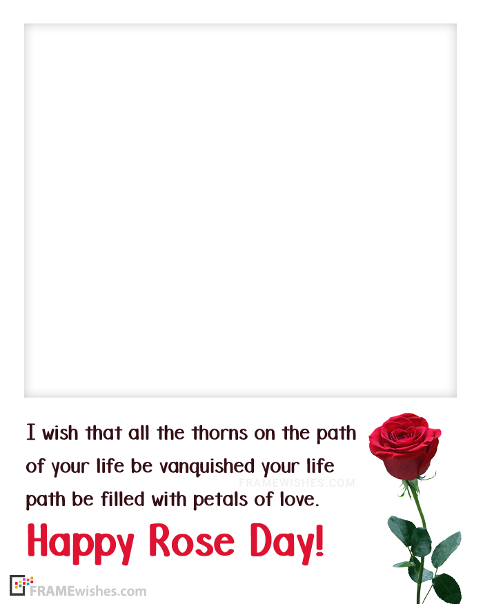 Amazing photo frame specially designed for couples on this rosey day with a loving wish "I wish that all the thorns on the path of your life be vanquished your life path be filled with petals of love. Happy Rose Day!"