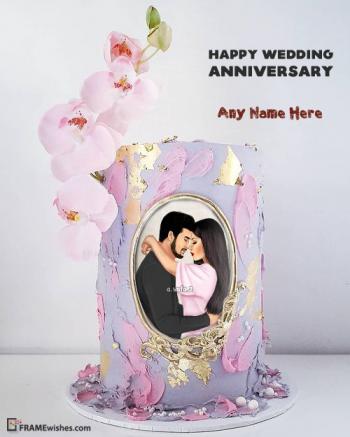 Happy anniversary cake with photo frame and name are freely available here. You can easily share or end these lovely photo frames to any of your friends and relatives.