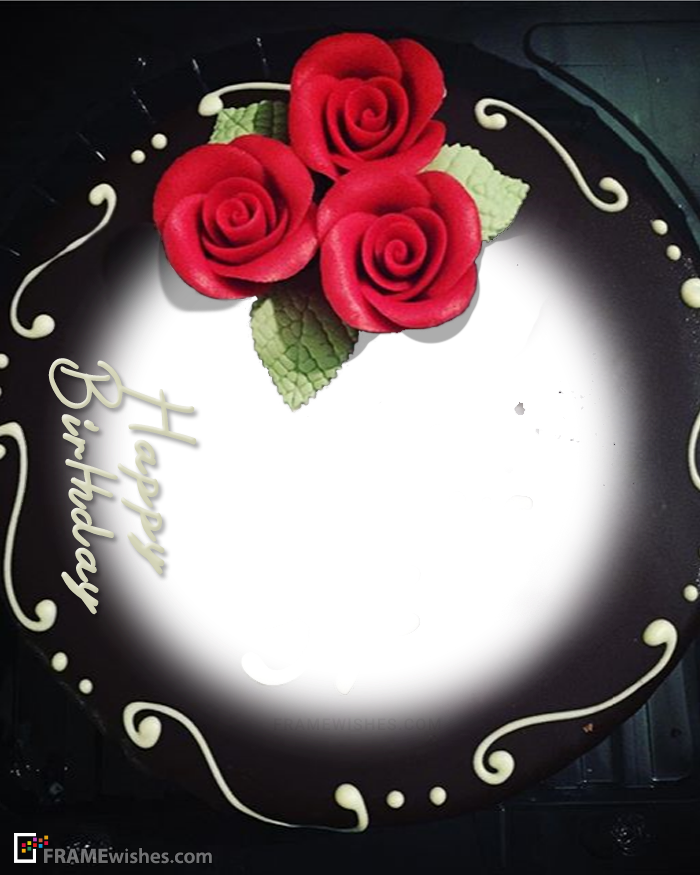Beautiful chocolate birthday cake with a red rose. Stick the photo whom you are going to say happy birthday. This will bring a smile to his or her face. Make birthday wishes cake with photo. Spread happiness and love.