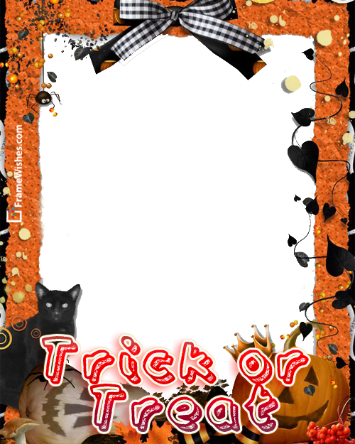 Cat and Pumpkins Trick Or Treat Happy Halloween Photo Frame Free Online