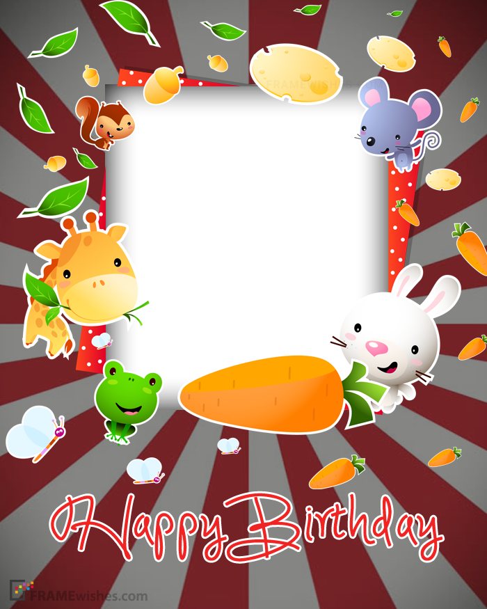 A beautiful and cute birthday photo frame for kids with lovely round border and little animals around it like rabbit, frog and more. Make this photo frame for your child on his/her birthday and wish in an awesome way. You can also use birthday cake photo frame for wishing your child.