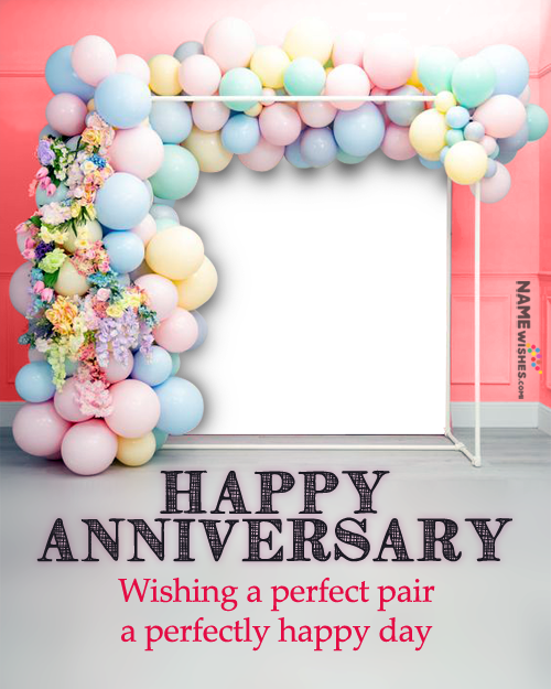 Try this beautiful balloons backdrop photo frame to wish Happy Wedding Anniversary to the couple. True love has no endings. It grows more and more.