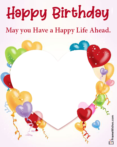 Happy Birthday Hearts Balloons Photo Frame Wish Free Online