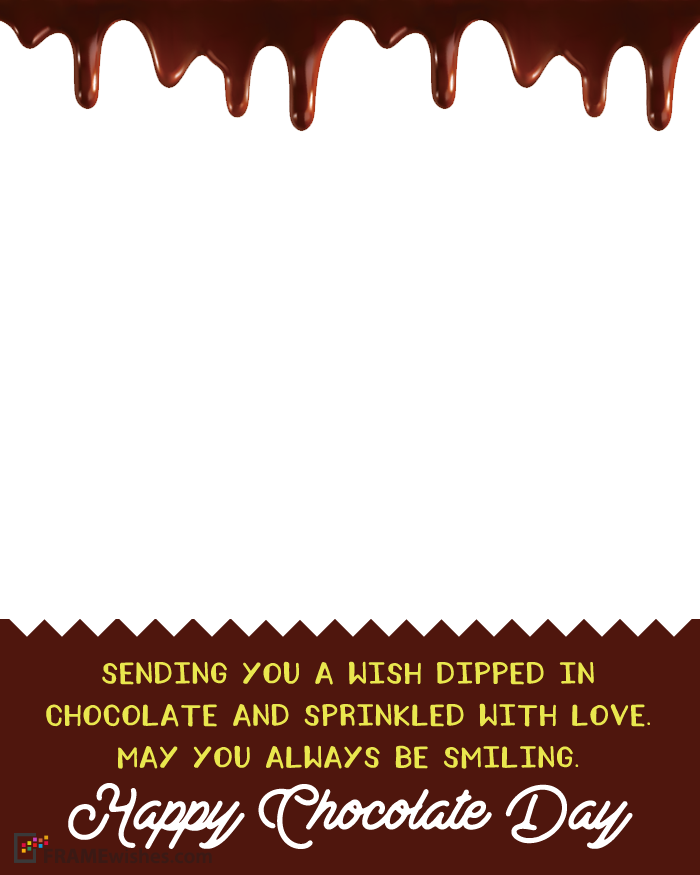 This chocolaty greeting card photo frame is specially designed for couples for chocolate day. This card has a note say "Sending you a wish dipped in chocolate and sprinkled with love. May you always be smiling. Happy Chocolate Day". Check all happy chocolate day photo frames.