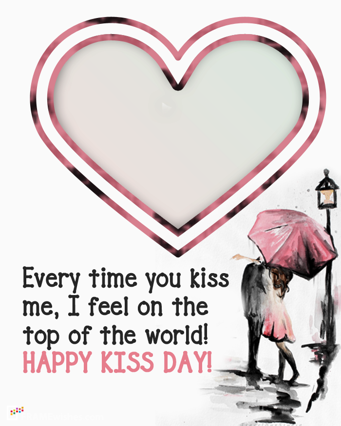 This photo frame is designed for husband and wife. Pick a nice photo of you both and apply this kiss day photo frame with wish " Every time you kiss me, I feel on the top of the world! HAPPY KISS DAY". Check all happy kiss day photo frames.