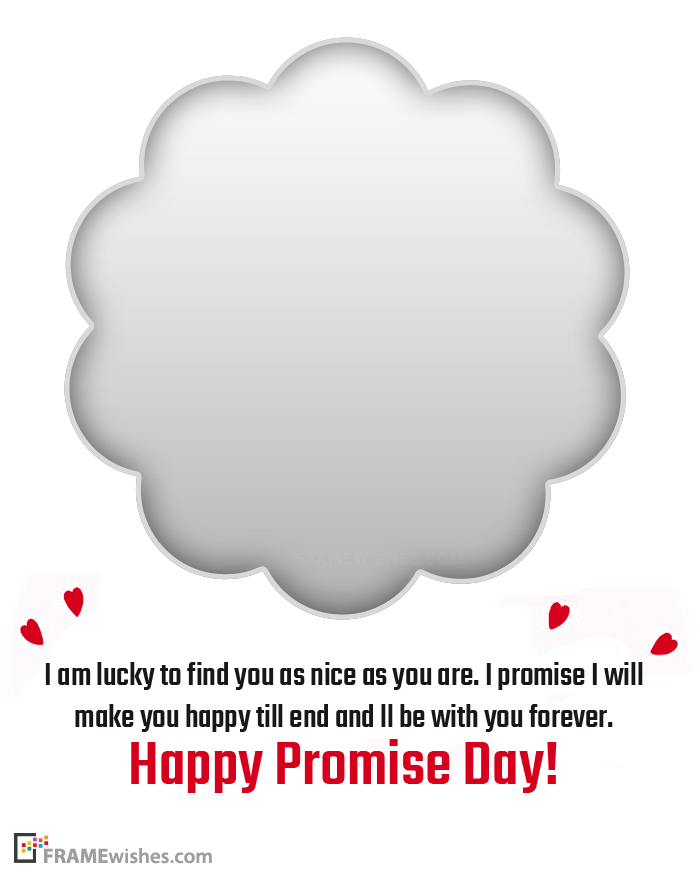 Create a superb promise day photo frame with a lovely photo and nice wish "I am lucky to find you as nice as you are. I promise I will make you happy till end and ll be with you forever. Happy Promise Day!" Check all happy promise day photo frames.