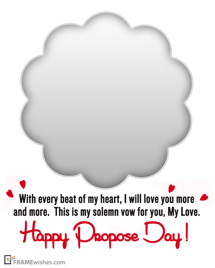 This new happy propose day photo frame wish will blow his/her mind with a special note that is "With every beat of my heart, I will love you more and more. This is my solemn vow for you, My Love.Happy Propose Day!". Check all happy propose day photo frames.