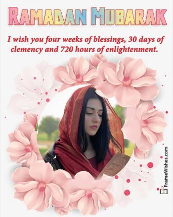 Wish your friends and Muslim Ummah a very happy Ramadan with our new unique happy Ramadan Photo Frames with beautiful wish. Collect a lot of blessing at the beginning of the Holy Month. A beautiful wish within this frame is "May the Spirit of Ramadan stay in your heart and illuminate your soul from within." Try more new Ramadan Photo Frames.
