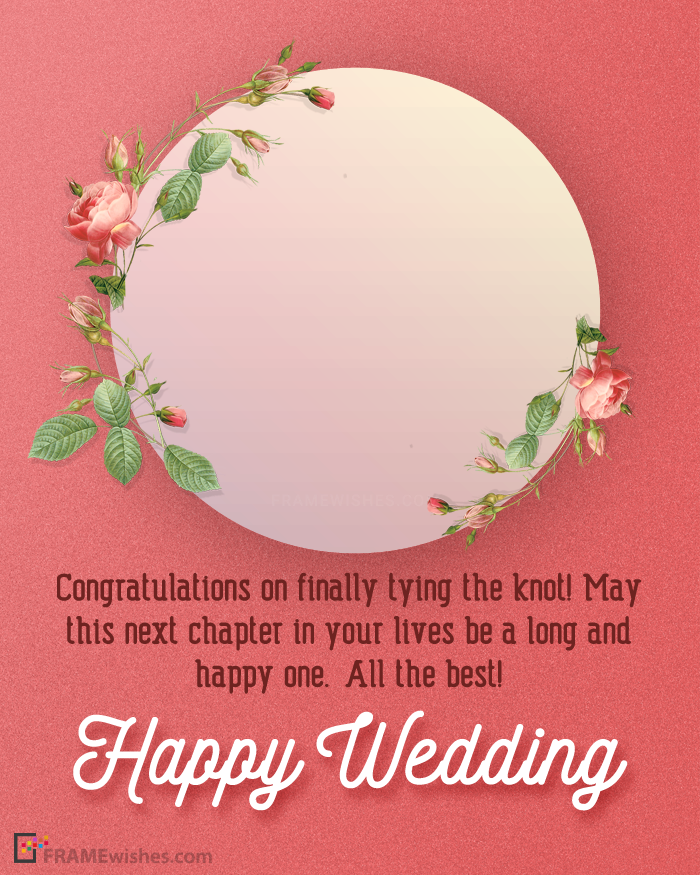 Looking for best wishes to share on the wedding of your friend, cousin, aunt, uncle, and it could be anyone. Here are the special happy wedding day frames, on which best wishes have been written that helps you to congratulate wedding. You just need to upload a photo of the couple and groom or bridal. Enjoy!