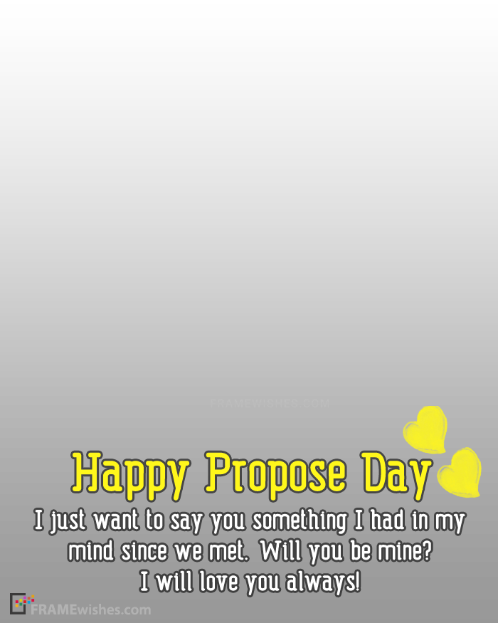 On this photo frame you can apply a nice photo of your girlfriend/boyfriend and send him/her with a nice proposal note which is "I just want to say you something I had in my mind since we met. Will you be mine? I will love you always!". Check all happy propose day photo frames.