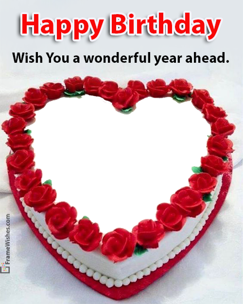 Red Heart Love Birthday Cake with Photo Frame Free online Edit