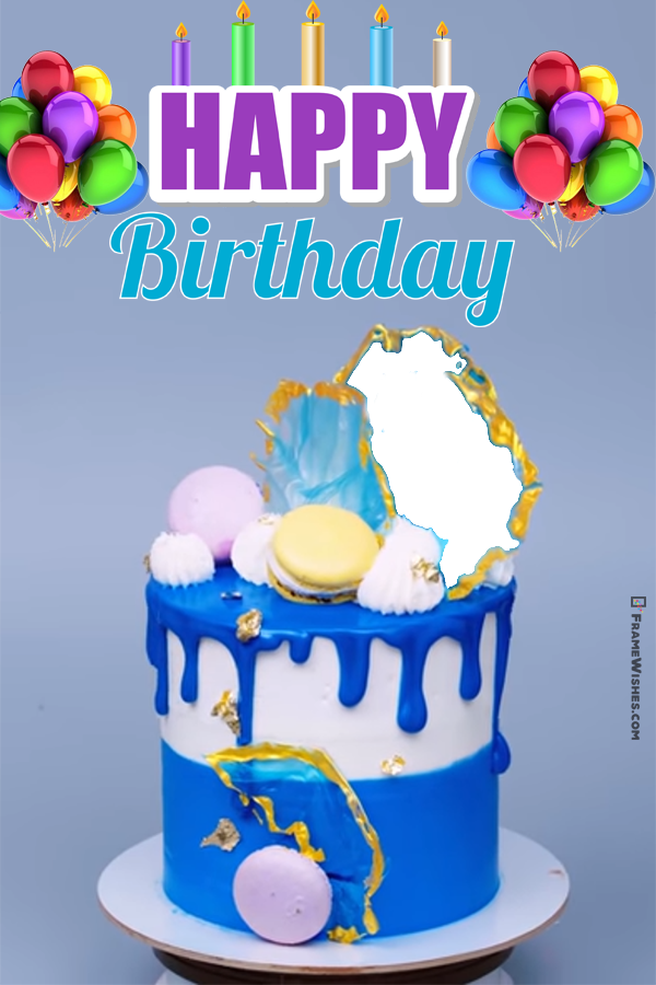 Royal Macrons Birthda Cake With Photo Frame and Name Edit