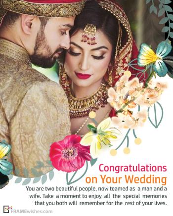 Shower your best wishes for the newly married couple in a cool way. Make them feel blessed, loved, and lucky. Say good luck for their new chapter of life. Decorate your wedding greetings with the photo of a couple and send your wishes with greetings. Check out the best wedding day wishes photo frame, you will love it.